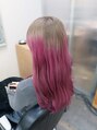 前日に他店にてデザインカラーした状態から。ピンクを剥がしてターコイズブルーにしました/ブロンド/ミルクティー/ピンク/ブルー/シルバー/ホワイト