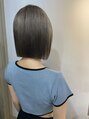 切りっぱなしボブにシルバーグレージュ〇ぱっつとラインを出してあげることでオイルでストレートでも大人可愛く〇