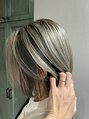 ボブヘアのシャドールーツカラー。根元は暗めのグレーで毛先にはアッシュグレーのハイトーンカラーです。髪の状態によってブリーチ1~2回必要となります。ボブ/ハイトーン/シャドールーツ/アッシュグレー/グレーカラー