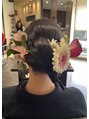 二十歳のつどい☆シンプルリボン風シニヨンスタイル生花で華やかに♪
