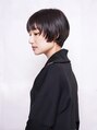 短く切り込んだ前上がりのラインが特徴的なショートスタイル。顔まわりを包み込むようにデザインしたレイヤーと前髪が目元とフェイスラインを引き立てます。スタイリング時に内側からヘアオイルを馴染ませて、ほどよい束感と透け感を出すのがポイントです。