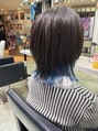 ウルフカットにインナーカラーを入れてカラーバターで青くしてあるスタイルウルフカット/中性ウルフ/ケアブリーチ/ダブルカラー/推しカラー/ハイトーン/インナーカラー