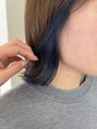 ブリーチありのインナーにブルーを入れました。切りっぱなしボブは耳周りからチラッと見えるインナーカラーもすごくオススメです!