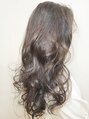 コンサバロングローレイヤー。ラウンドのロングレイヤー。寒色系のイノアカラーで品良く、柔らかさを強調。