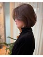 重めのボブベースにカットし、顔まわりとトップにレイヤーカットを施し毛流れを作りました。前髪から流れるレイヤーは顔まわりを軽やかに、上品にみせ印象を変えてくれます。トップのふんわり感も出てくれます♪カラーは人気のくすみブラウンカラー!