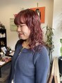 パーマベースの髪に赤注入!カット!カラー!ワンカラー/パーマ/レッドカラー/チェリーレッド/赤カラー/ナチュラルパーマ