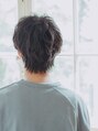 カットはマッシュショートにトップに動きが出やすいようにレイヤーを入れ、パーマでクセ感を出したスタイルです。襟足を外に流すように巻くとメリハリが出てスタイリングしやすくなります。トップのボリュームが気になり方におすすめです。【メンズ/眉毛】