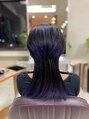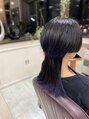 毛先に紫を効かせたグラデーションカラーがデザインカットをより引き立たせてくれます。