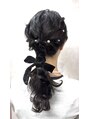 編みおろし/お呼ばれヘアセット/リボンヘア/黒髪アレンジ