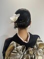 タイトアレンジに振袖に合わせて生花と金箔をつけました