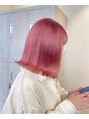 ブリーチ2回~つくるピンクカラー♪ベースを明るい状態にえてからカラーすると、色落ちがあまりオレンジっぽくなりづらいです!自然光と室内のライトでも見え方が違います!