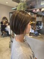 オリーブアッシュと丸みショートまとまりもあり、ぱらっと動きも出る質感にしています