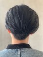 サイドはツーブロックにしてスッキリとした印象に極端なアシンメトリーにして個性的にして、ブルーブラックのカラーでクールな雰囲気に仕上げました