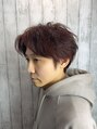 フワッとした立ち上がりの【センターパート】の【マッシュショート】♪ バックを刈り上げずにスッと馴染ませキレイめな印象へ! やわらかいフォルムに合わせたレッドブラウン系ヘアカラー血色良く爽やかなメンズスタイルに★