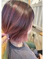 明るめのボルドーバレイヤージュ。退色も楽しめるように今朝から明るめのボルドーで。カットは面を残しながら、やわらかくフワッと感をプラスして。