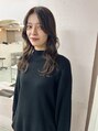 赤みをしっかり消した、透明感のあるオリーブブラウンです。顔まわりを後ろに流して大人らしさもありカール感で可愛らしさも出してます