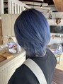 いつもより冒険したいスタイルならこれ。ブリーチ2回に淡いブルーをプラス。かなりビビっトなカラーなので、チャレンジしたい方はじっくりカウンセリングさせて下さい。