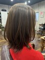 伸ばす過程で表面にレイヤーを入れてふんわりするようにカットし、明るめのくすみベージュでよりふんわりさを強調させました☆