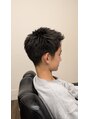自然な質感を出すためにバリカンは使わずセニングシザーのみで刈り上げ。年齢に応じて刈り上げ高さを帰ることによりその人にあった、希望に仕上がりに。
