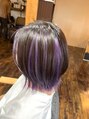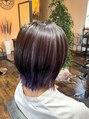 ネオウルフのスタイルにアンブレラカラーとしてインナーをパープル、表面を暗めの色にしてそれぞれの色を強調しています!スタイリングで透け感を出してあげるとインナーが見えるので可愛くなります!!
