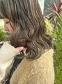 ブリーチなしのワンカラーでできるオリーブベージュです♪赤味や黄色味をしっかりと抑え、色落ちまで長く可愛いカラーを楽しめます^^スタイリングは切りっぱなしの鎖骨下ヘアを、26mmのコテでウェーブに巻いています♪