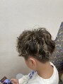 ツーブロックベースにハイライトとウェーブをプラス。ツーブロックでサイドはすっきりしトップにハイライトを入れることで立体感がアップ。ウェーブで柔らかさと動きを加えたオシャレでこなれ感のある仕上がり個性を引き出しアクティブな男の子にもぴったり