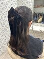 個性派カチモリハーフアップ◎個性派/カチモリヘア/ハーフアップ/カチモリハーフアップ/リボンヘア/結婚式/参列ヘア/お呼ばれヘア/二次会/同窓会/
