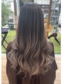 髪の状態と履歴にもよりますが、ケアブリーチ1回+グラデーションカラーで透明感と立体感のあるスタイル◎ストレート・巻き髪・アレンジしてもお洒落です。根元を暗めにすることで、伸びて来てもリタッチが目立ちにくいのも◎毛先の色落ちも楽しめます◎