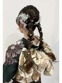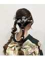 フィッシュボーン・フィガーエイトをさりげなく入れたツインアレンジ ガラス系の飾りとパールに合わせて銀箔もアクセントに