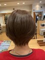 マッシュベースのショートスタイルに表面をエフィラージュを加え、立体感を演出しています。サイドの毛は耳にかけることで雰囲気を変えることも可能です。