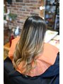 半年前にバレイヤージュカラーをされたお客様です。今回は、全体的にハイライトを沢山入れつつ明るく褪色した色味を抑えつつ、再度カラーを施してモカグレージュに。