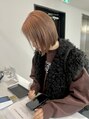 こんにちは♪tuelu stylist harukaです!今回はミニボブとダブルカラーです!ブリーチリタッチして柔らかいベージュカラーに^^