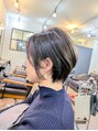 ハイライトを3ヶ月前に入れており、退色しきってる状態から透明感のあるグレー系に染めました。スタイルは、お色に合ったクール系のショートボブに。簡単にスタイリング出来るようにカットしております!