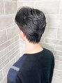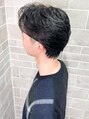 横がツーブロックになったショートスタイルで、毛流れが美しいフェザーパーマ。お手入れ楽々でカッコ良い。