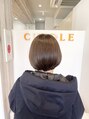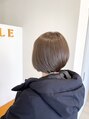 ベージュベースに青みを少し足して深みがありながらも透明感のあるショコラグレージュにしています。カットは表面に段差を入れて乾かしただけで丸いシルエットになる様にしています。
