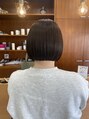 襟足ギリギリのミニボブやや並行気味の丸いシルエット♪色は赤みをおさえたオリーブベージュにしました^^