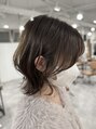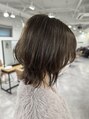 ブリーチなしのオリーブグレージュです!同じ明るさでも他の色に比べると透明感が出やすいので人気のお色です!カットは低めにレイヤーを入れているので内巻き1カールも外はねウルフスタイルも楽しめるようになってます