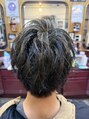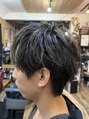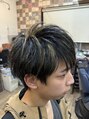 全体に多めにメッシュカラーを入れております。サイドから後ろにかけて長めのバリカンで入れ自然な感じに収まるように施術しております。