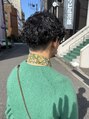 カールが強めの波巻きパーマ。トップは動きの差をつけるのに短くしてスパイラルをいれています◎全部波巻きにしてもかっこいいです☆ 強さは選べるのでご相談ください♪