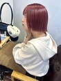 【吉田江梨】暖色深みレッド外はねボブブリーチチェリーレッド/ホットペッパービューティー