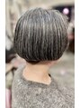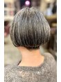 白髪をいかしたステップショートボブです白髪を綺麗に見せるために丸みをつけてみました。【髪質改善/ハイライト/白髪ぼかし/白髪染め/カット/ショート/カラー/リタッチ/前髪カット/元町】