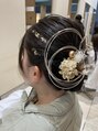 人気のシニヨンヘアセット!セットは控えめに飾りでボリュームを出して、水引が映えるようにしてあります!