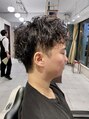 ツーブロックのマッシュウルフに強めのパーマを当てました。仕上げは軽めのフォーム(ムース)を濡れ髪に馴染ませるだけ。