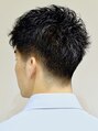 周りはバリカンで刈り上げ、前髪はアップバングのすっきり爽やかスタイルです。