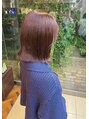 ブリーチ無しカラーです。イルミナカラー12トーンブロッサム、PYRを調合しました。髪質、生え方、骨格に合わせた切りっぱなしボブをベースに外ハネになる様レイヤーで調整しました。