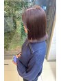 ブリーチ無しカラーです。イルミナカラー12トーンブロッサム、PYRを調合しました。髪質、生え方、骨格に合わせた切りっぱなしボブをベースに外ハネになる様レイヤーで調整しました。