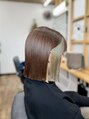 プツっとしたボブに、インナーカラーを入れてオリーブベージュ。髪質改善ロイヤルトリートメントで艶とまとまりも◎