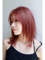 基本は、ワンレングスのベースカットから、顔周りにレイヤーカットを入れたスタイルです。カラーは、ブリーチなしでこの発色になるように配合しました。ティントバー使ってます!