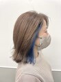 クセが強く、多毛のお客様でも日頃お手入れが楽にまとまりやすく可愛くスタイリングしやすいカットをさせて頂きます。表面はベージュ。インナーカラーははじめは濃いめのブルー、少しずつ水色カラーに抜け落ちをお楽しみ頂けます☆
