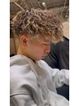 茶髪ベースに金メッシュで外国人風パーマをすることで束感up